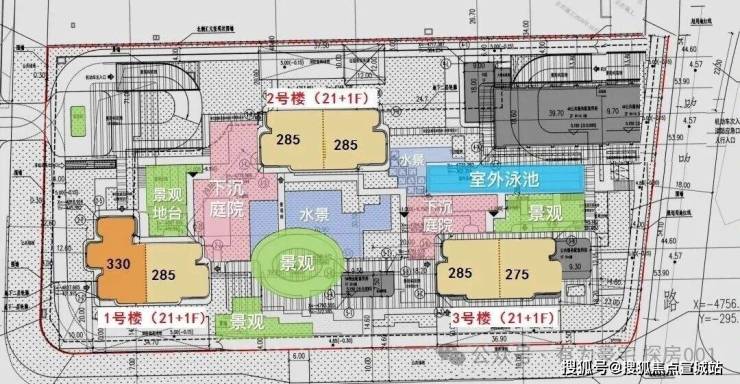 西边套285㎡,东边套275㎡,复式465㎡电梯显示总高27层,(4-13-14-18-24没有),总高相当于22层