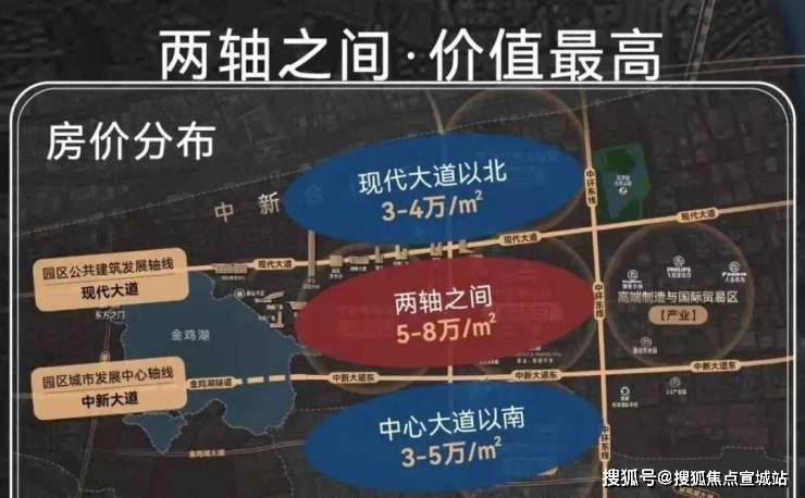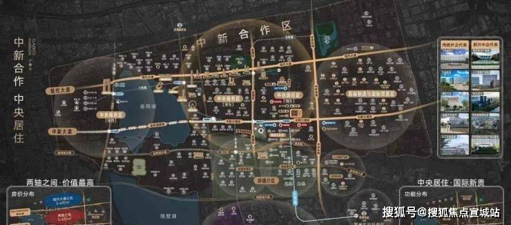 通过"两横两纵"路网(现代大道/中新大道/星塘街/中环东线),贯通园区核心地标
