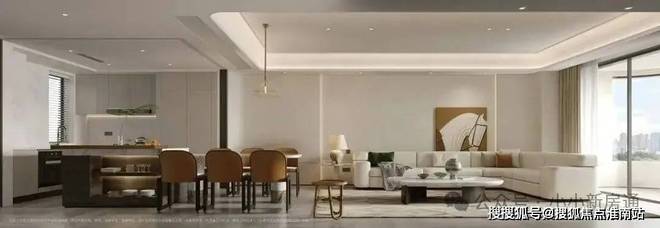 会客空间约有50平,餐客厅一体化足足有近百平,尺度感超强。