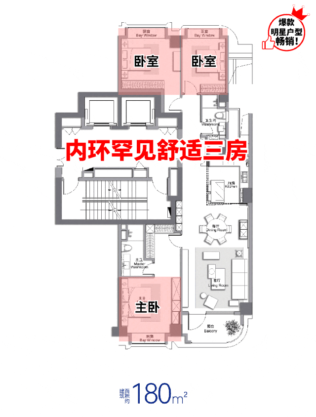 区别于市场常见的4房配置,项目做了差异化大三房,各空间更舒适。