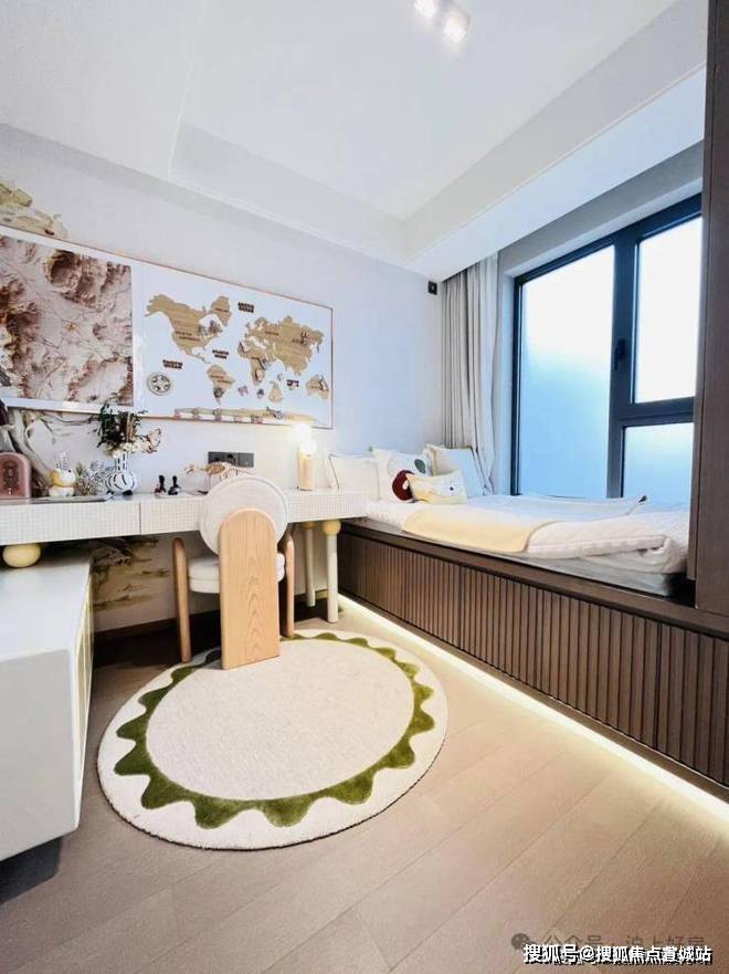 南向次卧外接阔景阳台,这套样板间是与餐客厅联动使用的,未来业主也可以根据自身需求,打造成书房、影音室、电竞房、儿童房等各类生活场景满足不同家庭的生活需求!
