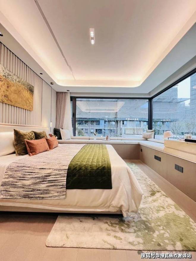 三卧室朝南、全卧室飘窗设计,实用性更强,主卧同样是270度转角飘窗设计,通风和采光效果非常不错,也丰富更多收纳可能性。