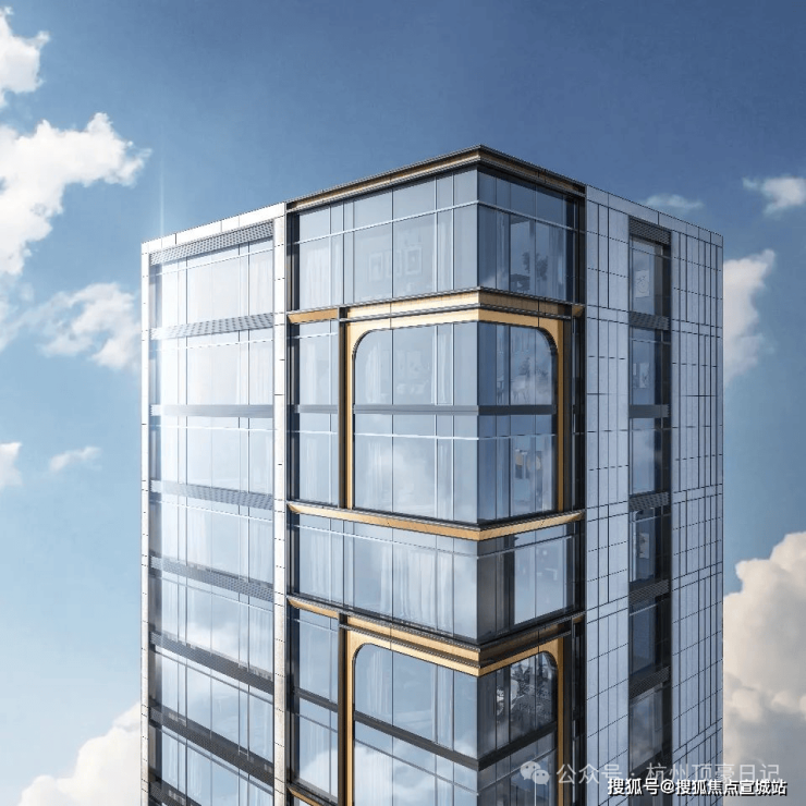 建筑设计:采用现代风格,铝板、玻璃搭配金属框线,打造飞虹屏美学立面。