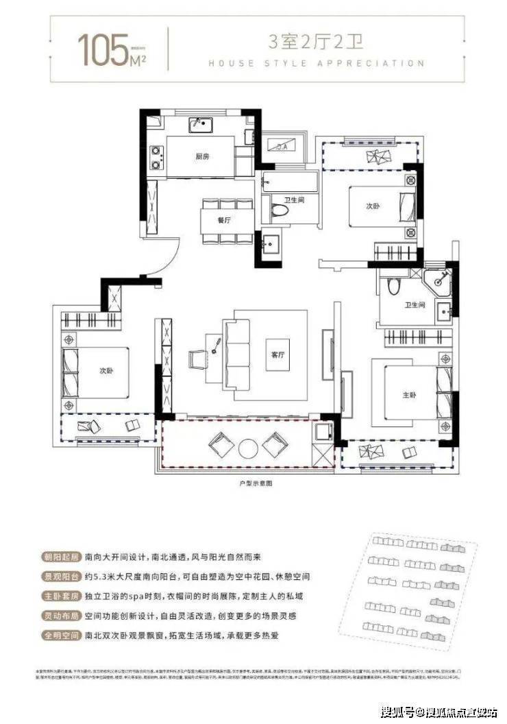 空间特色:得房率84%-87%(部分户型实际使用面积相当于高层110㎡),南北通透+双联阳台设计,地下室可拓展