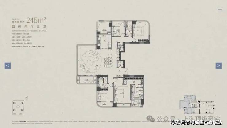建面约245㎡,总价3700-4800万,折算单价15.1-19.6万元/㎡