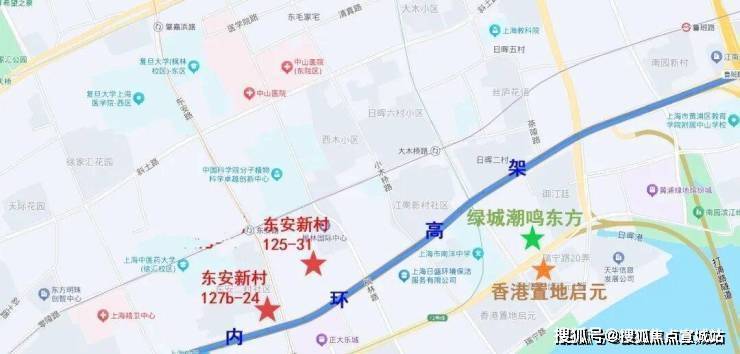 医疗:距离复旦大学附属中山医院约 1.3 公里,复旦大学附属肿瘤医院约 1.6 公里,上海中医药大学附属龙华医院约 2 公里。