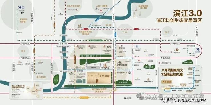 交通方面,2018年3月31日地铁浦江线(原8号线三期)开通试运行,5站即达沈杜公路站并与8号线换乘,可一线直达前滩。或通过BRT快线可一站无缝对接8号线沈杜公路!