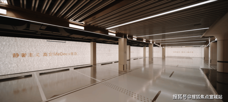 过去在豪宅项目才能看到的类似于“星空顶”地下车库坡道,招商臻境使用了看来更加高级的香槟金色吊顶,并加上穹顶闪耀的“追光”坡道!精装的地下大堂,配置了