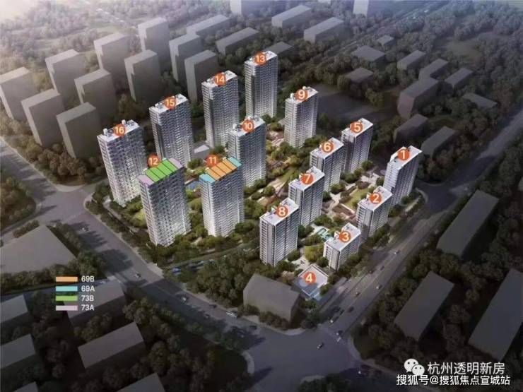 楼层状况:共16幢,可售14幢,9-27F高层住宅(包含1幢自持,1幢物业用房)
