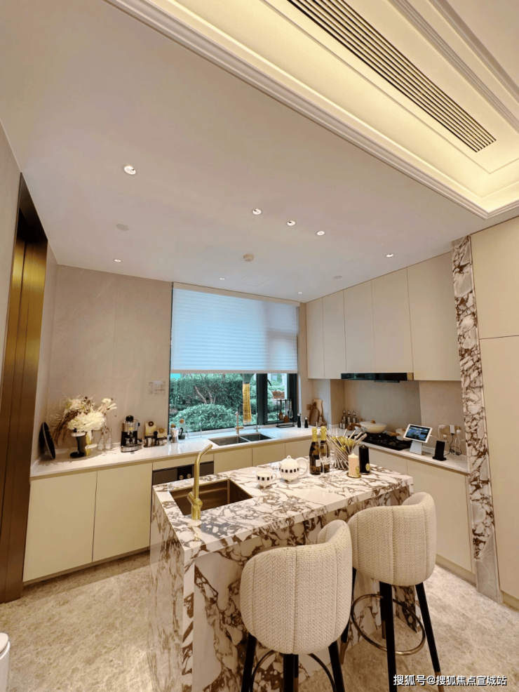 在室内设计上,入户大堂采用二层挑空设计,高贵大气,凸显空间感,提升大平层的整体价值;