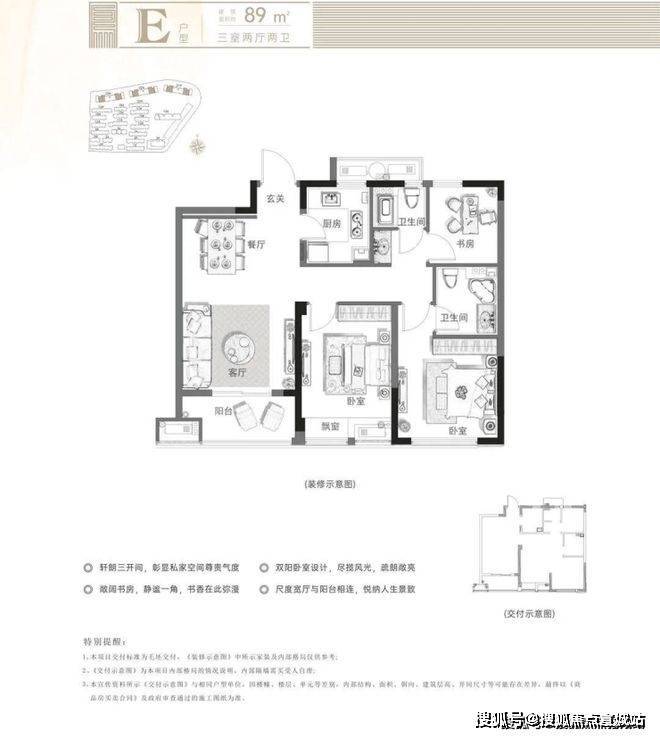 高层户型:有 89㎡、116㎡、125㎡的三房两厅两卫户型。