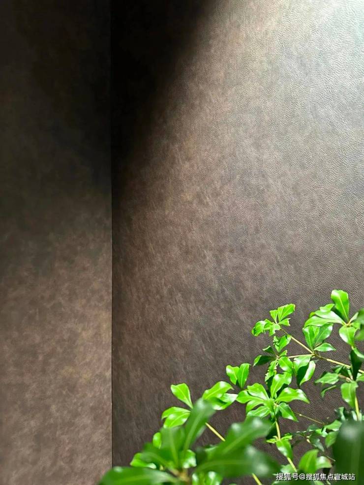 这还不是重点,玄关座椅背后,是一面皮革包裹的墙面。