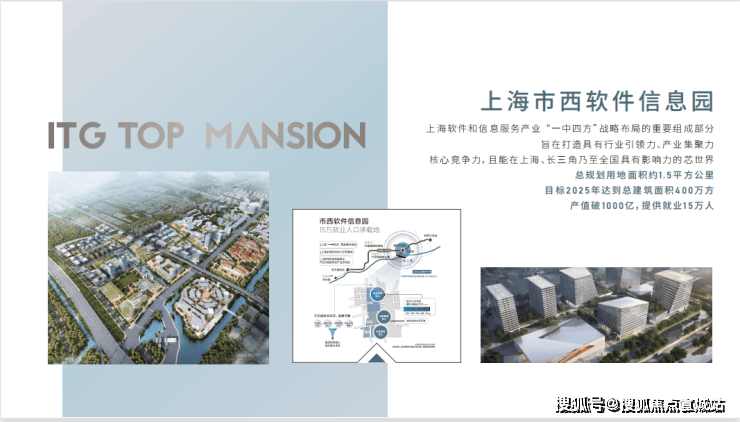 嘉松中路站科创主体是市西软件园,作为上海十三五规划重点科技园区,在青浦区十四五规划中,将成为上海软件开发和新一代信息技术的重要功能区,定位为千亿级产业园区,提供就业岗位约15万人。计划2025年预计实现建筑面积约400万㎡,经营收入达到1000亿,发展信息技术、人工智能、大数据、云计算、生命健康等多元化产业。2017年上海经信委将市西信息软件园正式纳入上海”一中四方“战略布局,成为上海软件信息产业布局中的重要一环。“一中”是以中心城区为主,“四方”指的是浦东张江科创园、闵行紫竹科技园区、静安高新科创园区、青浦市西信息软件园。