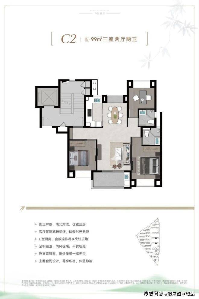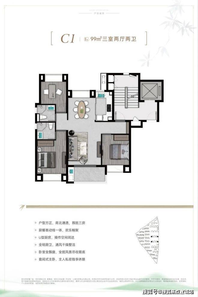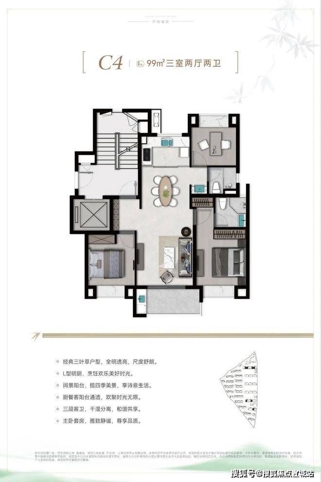 C4户型建面约99㎡3房2厅2卫: