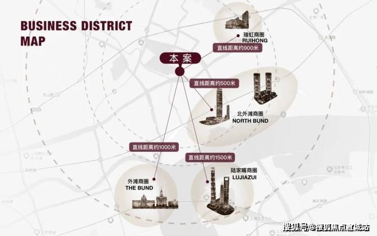 商业配套方面:项目约2公里内,多元繁华构筑封面商业圈:北外滩商圈直线距离约500米,外滩商圈直线距离约1000米,陆家嘴商圈直线距离约1500米,瑞虹商圈直线距离约900米。