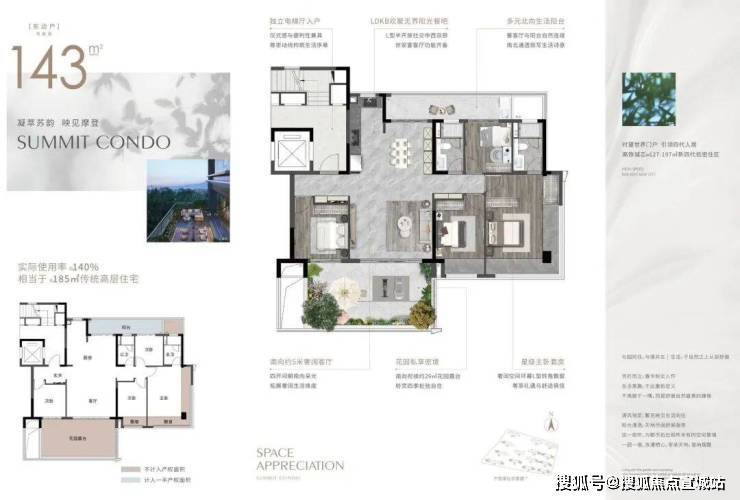 建面约143㎡洋房(赠送约29㎡露台,使用面积相当于约185㎡传统高层)
