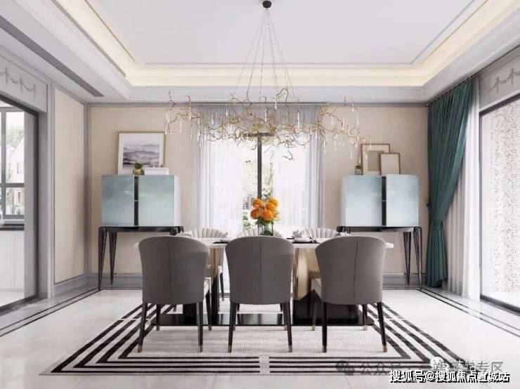小区建筑设计以简欧风格为主,外墙干挂大理石,整体是浅米黄色调。四周采用铝合金断桥双层中空玻璃采光窗装饰和庄重石柱,为别墅的豪气程度增添色彩。样板房室内装修为轻奢和简欧混搭风格,自带高级感的设计元素彰显了住户的气质。