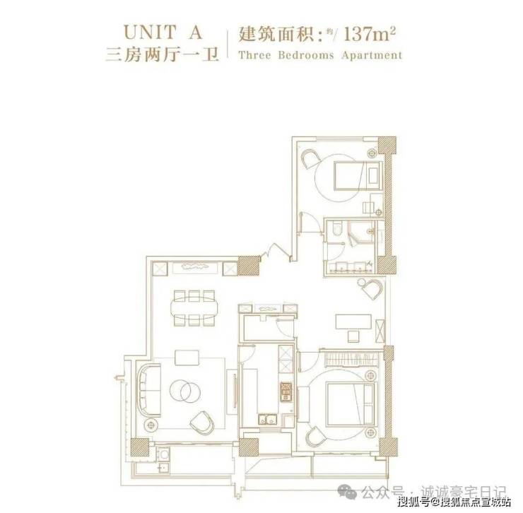 137㎡2+1户型南北朝向(一梯两户)⬇⬇