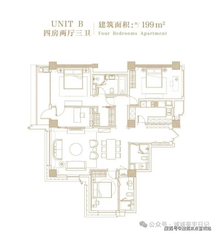 199㎡~3+1户型(一梯两户)⬇⬇