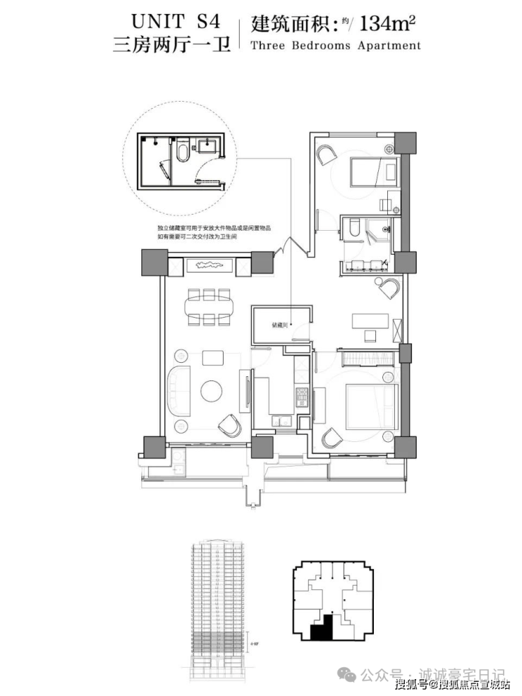 134㎡2+1户型(一梯两户)⬇⬇