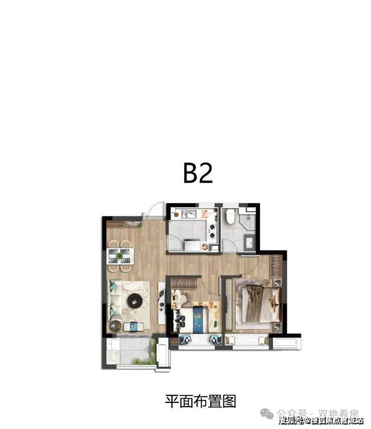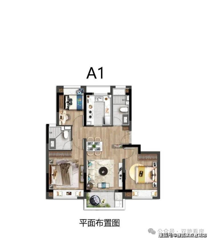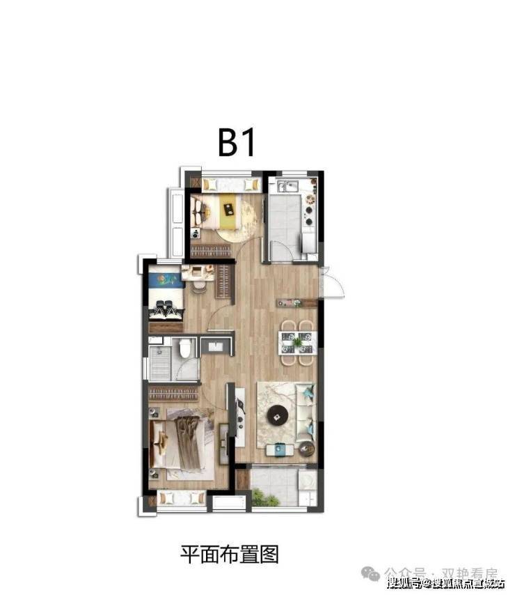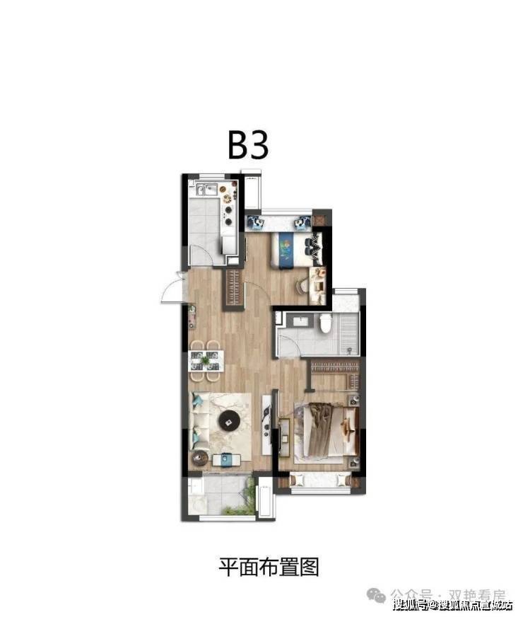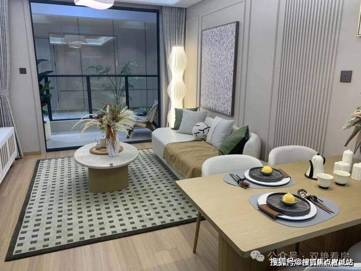 洋房:建面约72-91平方米,2-3房户型,三开间朝南且全明通透,得房率约78%,层高2.9米。