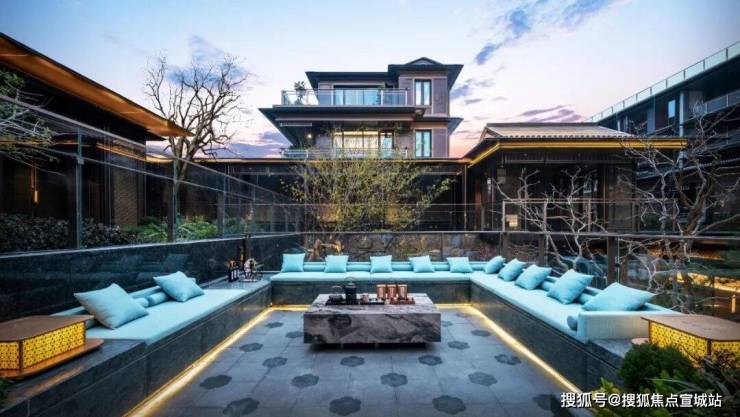 多重标高构建复合场景,亦亭亦榭,形成多样化的视觉序列。©绿城杭州春颂香雪里、LEAP绿城利普