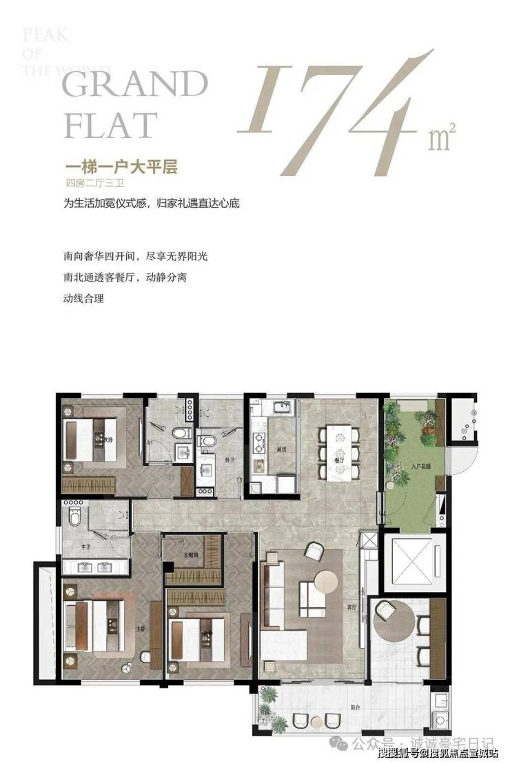 户型特点:全市在售类住宅产品中唯一的纯板式户型,全明南北通透,户户通燃气,户户有阳台,得房率高达 80%。如 160㎡户型客餐厨一体设计,主卧带独立卫浴和超大阳台;172㎡户型南向奢华四开间,动静分离;230㎡户型有罕见三套房设计。