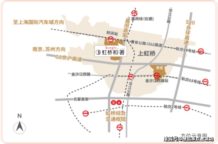 近地铁13号线金运路站:纵横普陀区、静安区、黄浦区、通达南京西路、淮海中路、新天地等地。南北动脉-嘉闵高架:上海“三横三纵”重要南北动脉,接轨虹桥商务区,高效连接上海各区。
