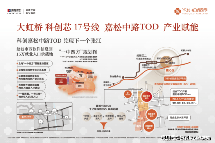 交通:除 17 号线嘉松中路站外,还有 “一纵四横” 立体交通路网,“一纵” 为嘉松中路,“四横” 为 G50 沪渝高速、沪青平公路、崧泽高架、盈港东路。