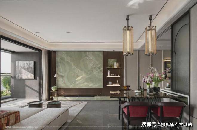 除此之外,整个室内还运用了大量的奢石点缀:像徐汇滨江主力3000以上新盘同款的翡翠绿玉石门把手;
