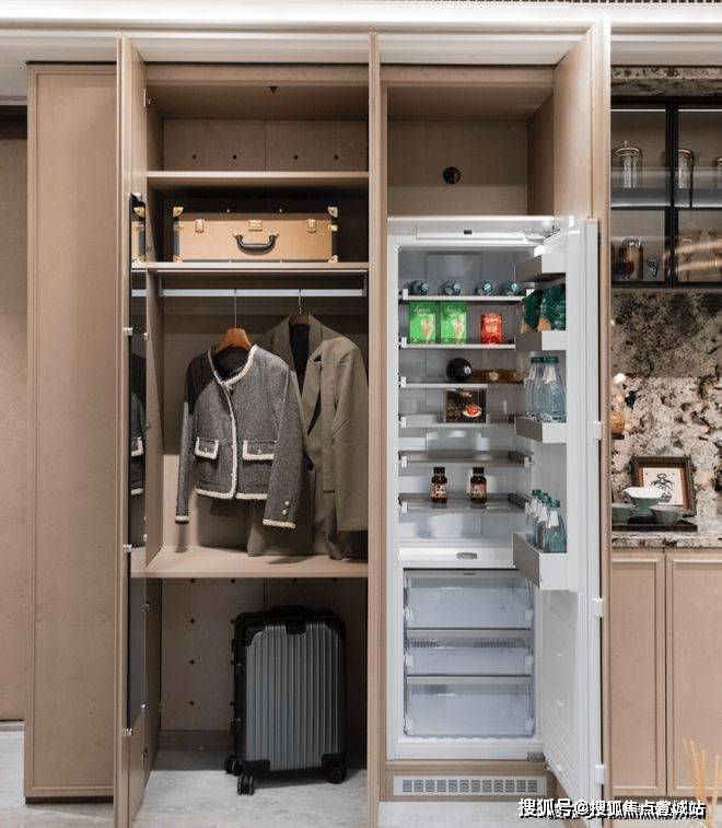 100㎡户型标配嘉格纳三件套(灶具、脱排油烟机、洗碗机),137㎡户型进阶至嘉格纳五件套(增加单独的冷藏冰箱和蒸烤一体机),同时标配博世双开门冰箱,烹饪的效率与质感被直观提升。