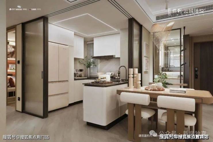 比如,云珹瑧悦府所有户型都是LDK一体化设计,在设计阶段就将厨房和客餐厅做了整合,通过统一吊顶设计和上轨道移门,形成独特的半开放式厨房,拉开三联移门,橱柜就成了年轻人梦寐以求的“岛台”。