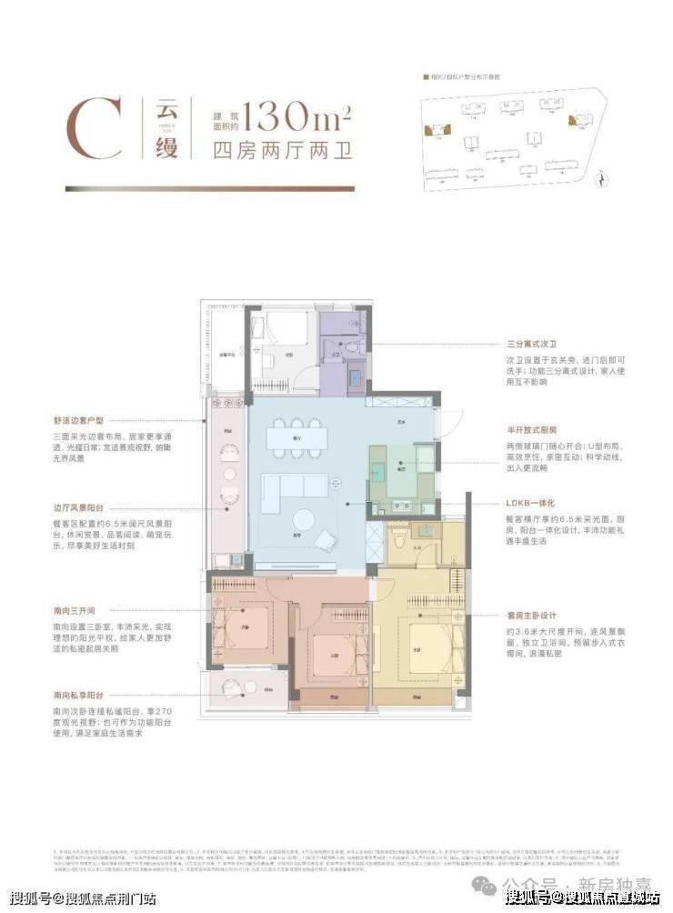 建面约130㎡的南厅户型,做了“类一梯一户”设计,扩大了业主活动空间。