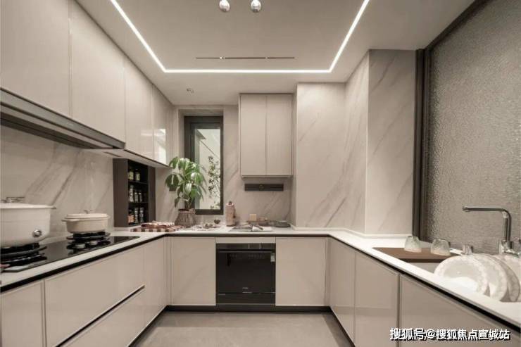 除了户型尺度,招商序的展示空间用料也是在700万这个量级难逢敌手,整个展示空间,除了卧室的拼花地板,其他区域的地面与墙面几乎全是岩板与奢石。连卫生间墙面都做到了岩板通铺....这种用料一般只有千万级的豪宅才能看到,114的客厅背景墙也采用了天然大理石搭配岩板交付,岩板因工艺复杂、性能优异,多用于高端场景,招商序厨房、卫生间墙面地面,客餐厅地面连通阳台,全部通铺岩板,可见硬装投入度之高。
