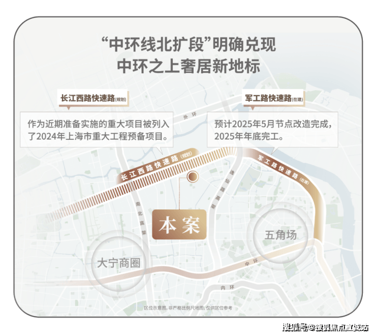 军工路快速路新建工程预计今年年内完工,意味中环北抬今年将迈出重要一步,而长江西路快速路已被列入2025年上海市重大工程清单,预计即将开工。