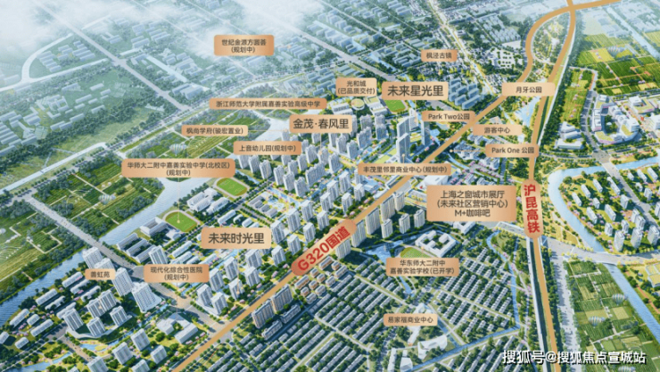 凭借紧邻上海的先天优势,依托“2高3轨2路”立体交通网络(G60沪昆高速、申嘉湖高速;上海示范区线、嘉兴至枫南市域铁路、南枫线;320国道、朱枫公路),实现与上海同城生活圈,美好践行“上海乐业,金茂安居”的都会理想。