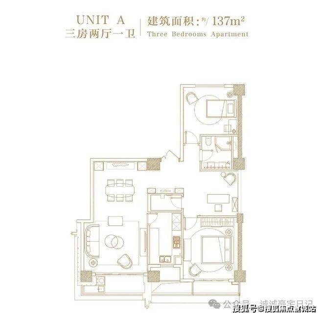 137㎡2+1户型 南北朝向(一梯两户)⬇⬇