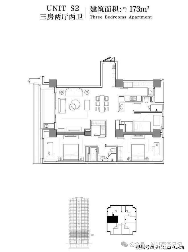 173㎡3房 东西朝向或西东朝向(一梯两户)⬇⬇✅✅滨江一品苑售楼处电话:400-885-1337✅✅