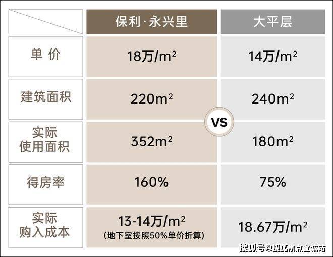 现在的内环,买套高层都得“踮脚够”.看看市场数据:2024年的地王宸嘉徐汇龙华地块,楼板价就高达12.6万/㎡,业内预测未来高层单价要奔17万+/㎡,西藏北路4房总价约3300w+.但保利・永兴里的双拼别墅,房地联动价18万/㎡,看似和新房高层单价接近,实际性价比却甩出几条街——要知道,大平层得房率约75%-80%,几乎无附赠空间.而保利·永兴里平均附赠率高达60%,买220㎡实际能用到352㎡左右,算下来实际单价可能比同区域高层还低!