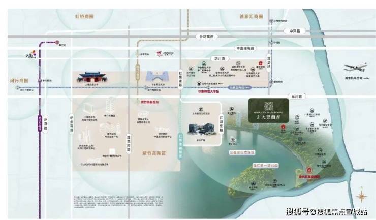 地块所在的紫竹区域占据浦江上游第一湾独特地理位置,核心区域有闵行第一大湖兰香湖,水域面积广阔,岸线绵延,湖光潋滟。