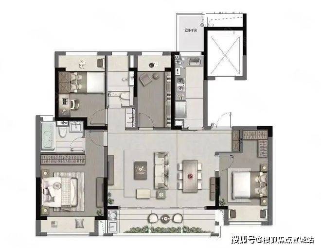 纯粹四房改善社区:观澜雅境打造125㎡起步的全四房户型,满足全龄家庭成长空间需求;所有户型均为二梯二户,户户独享电梯厅,内外双玄关,得房率近80%.