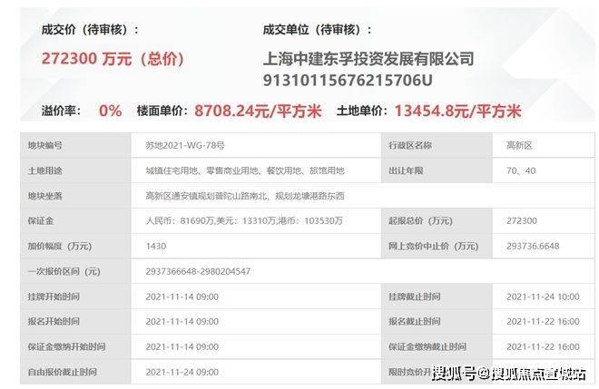 中建观澜雅境,即苏地2021-WG-78号地块,位于高新区通安镇规划普陀山路南北、规划龙塘港路东西,是2021年11月25日,中建东孚以底价272300万元竞得,成交楼面价8708元/平.