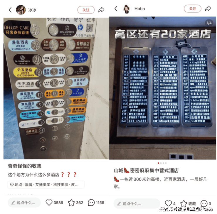 以杭州的一栋高层大楼为例,整栋楼内分布着十余家酒店,几乎实现了“每层一家”的密集布局。更有甚者,部分公寓楼出现了多家酒店共享一个大堂,仅通过楼层进行区隔的经营模式。