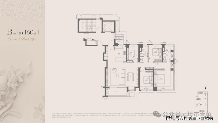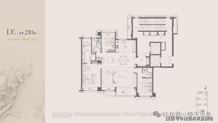 两梯两户+独立电梯厅+双套房格局。边厅设计带来东、南双向约270°采光,俯瞰中央下沉庭院与大宁公园,视野极佳。