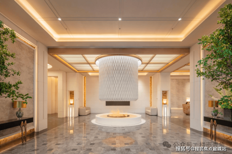 再往里走就是迎宾区,整个公区部分由世界顶级的奢华酒店设计专家CCD负责设计,4.5米的层高直接打造出了顶奢酒店的质感。