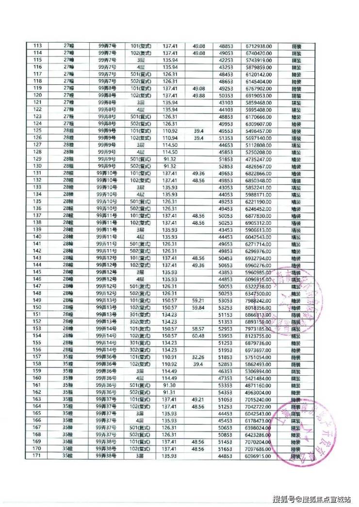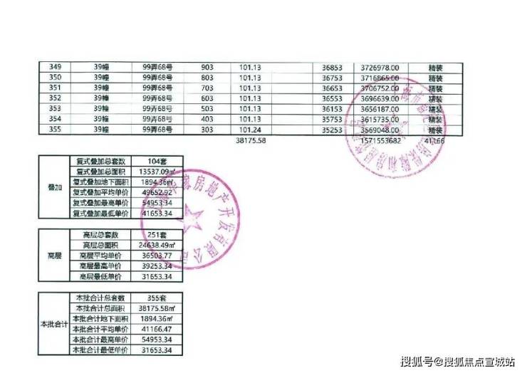 上期一房一价表如下