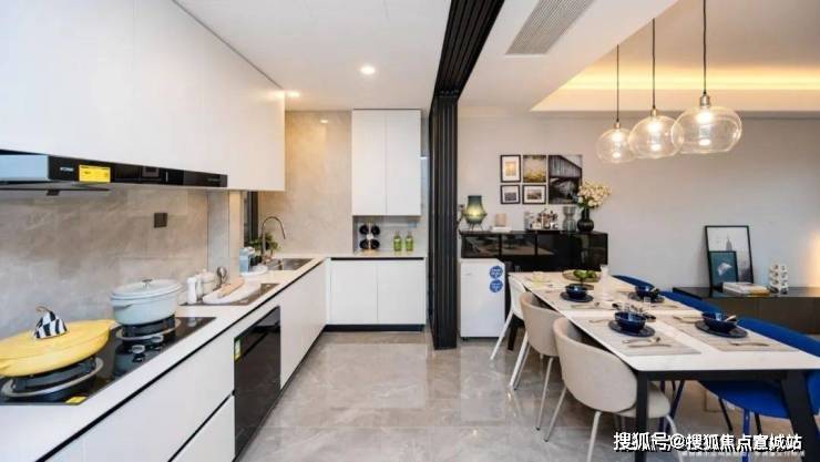 其次,厨房也配齐了品牌燃气灶/油烟机/橱柜三件套,增配洗碗机,再加上单体大水槽、抽拉式水龙头、金属玻璃门,在单价3万级的楼盘中属实难得。