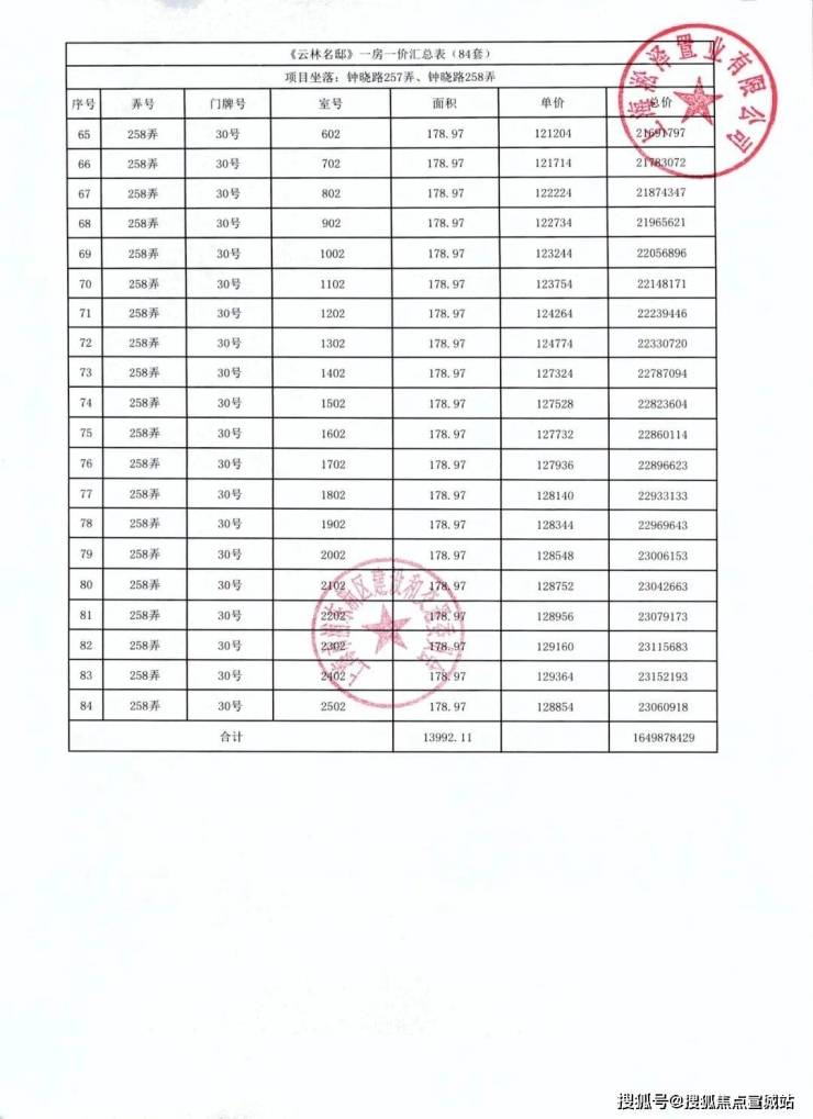 前期「一房一价表发布」