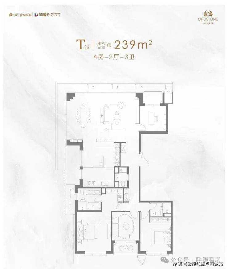 主力户型:建面约 105-180㎡三至四房,另有建面约 174-400㎡滨水洋房及顶楼复式,还有少量建面约 500㎡顶层复式。