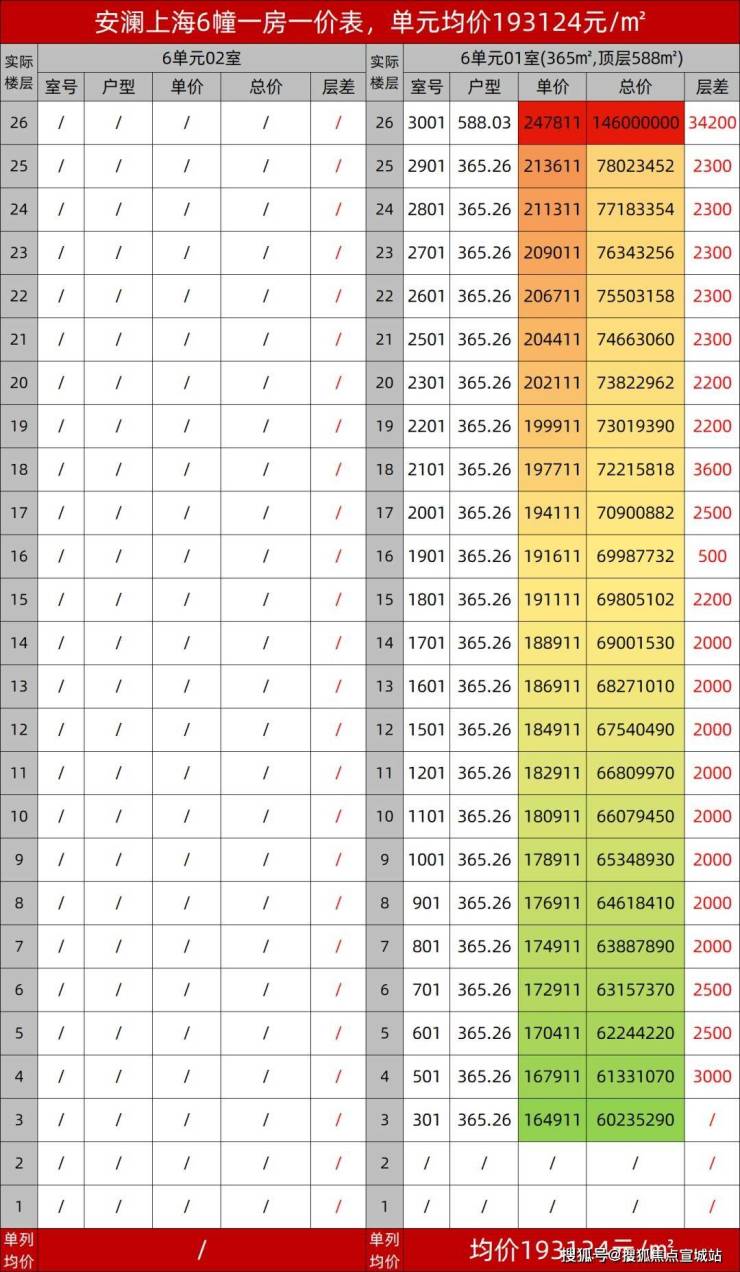 具体楼栋房源的一房一价如下: